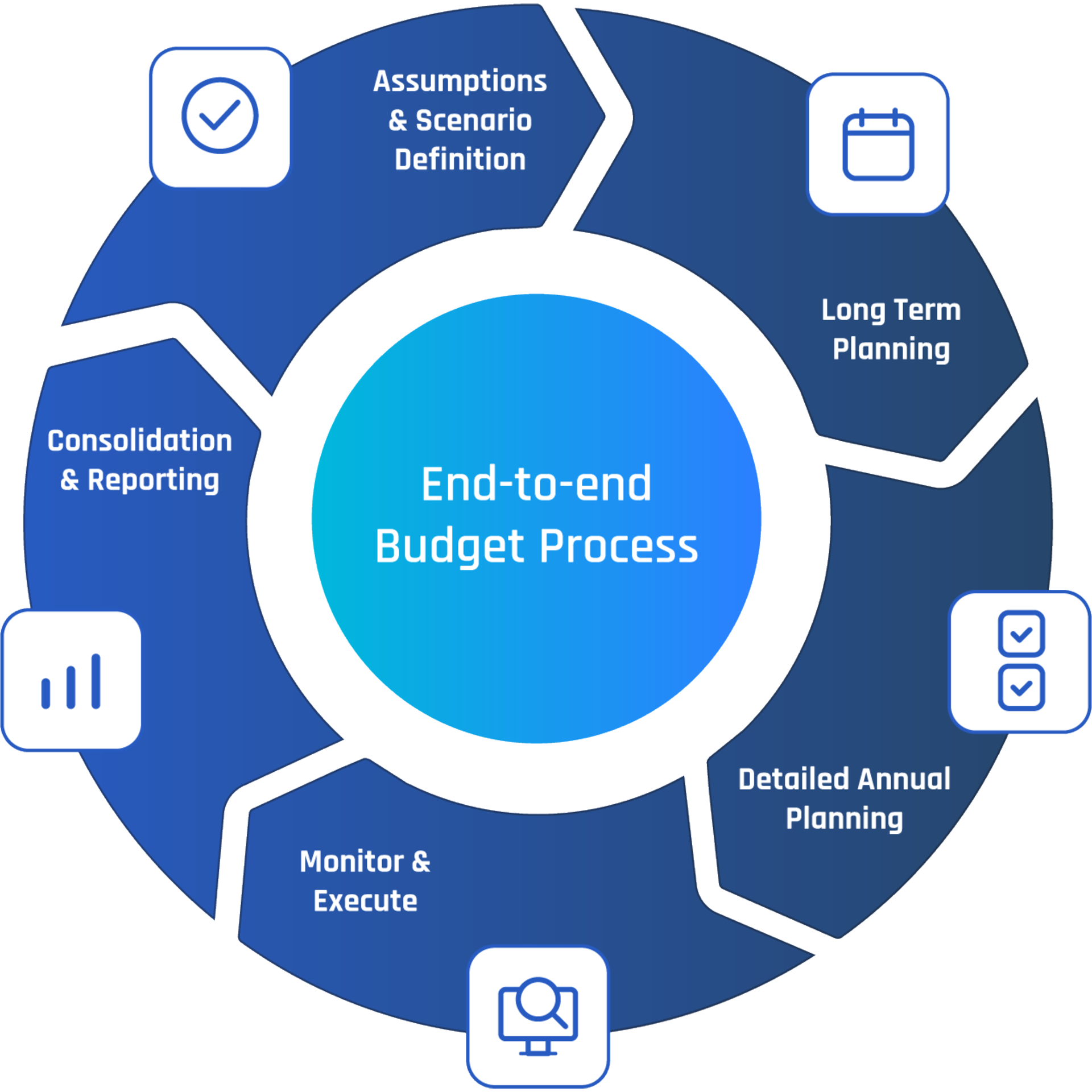 End-to-end financial planning that flows through every stage of your organization and facilitates long-term fiscal planning.